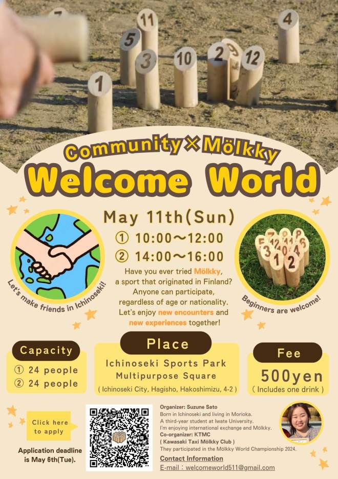 Whether you want to meet people living in Ichinoseki or just try Molkky, everyone is welcome!