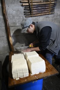 岩手県北部は豆腐が昔から食べられてきました。中でも久慈市山根町にはいまだに昔ながらの豆腐作りを続けている方々がいます。山根キャンプを伝統的な食文化の伝承の場に繋げるべく、豆腐作り体験を行いました。